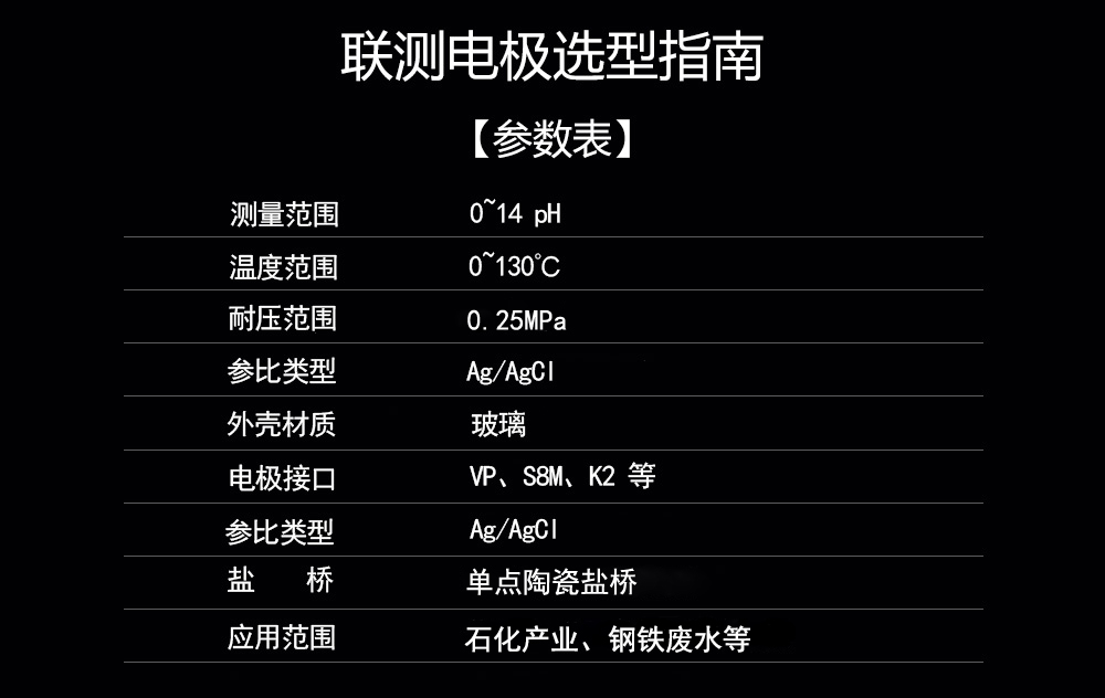 PH-5100 電極使用耐壓半球形 pH 敏感膜,混合膠 GMT 構成的中介電介質,Ag/AgCL/KCL 外參比體系,無鹽橋 (OPEN)開口液接界所構成。
