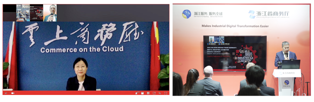 此次漢諾威工博會(huì),我司同阿里云、三維通信、舜云互聯(lián)、申昊科技等多家浙江知名企業(yè)共同亮相浙江省商務(wù)廳主辦的2022浙江服務(wù)貿(mào)易(德國)數(shù)字工業(yè)展,向全世界展現(xiàn)“浙江服務(wù) 服務(wù)全球”的魅力。當(dāng)?shù)貢r(shí)間5月30日上午,浙江省駐德國商務(wù)代表處主任張漢東在現(xiàn)場主持工業(yè)展開幕式,浙江省商務(wù)廳服務(wù)貿(mào)易處處長莊謹(jǐn)在線出席開幕式。