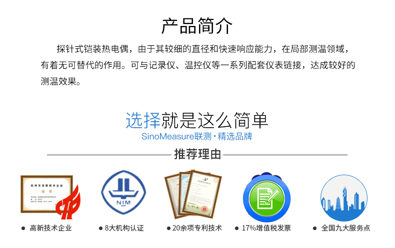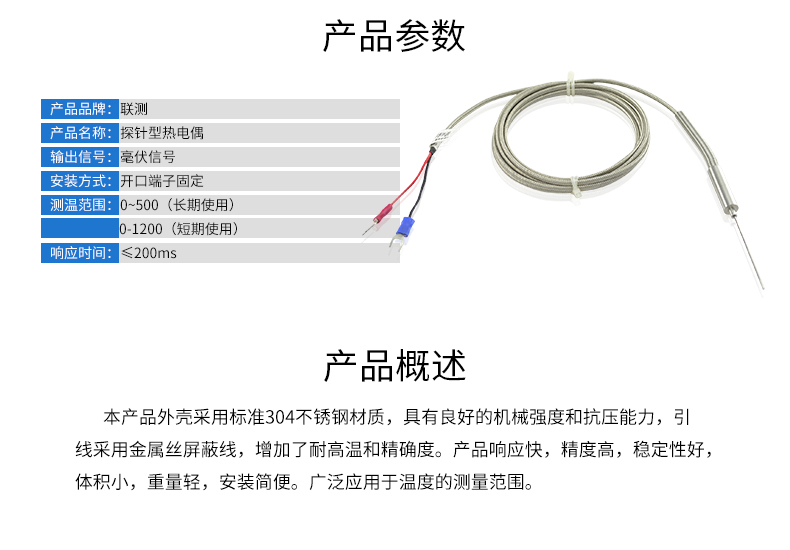 探針式鎧裝熱電偶,由于其較細的直徑和快速響應能力,在局部測溫領域, 有著無可替代的作用。可與記錄儀、溫控儀等一系列配套儀表鏈接,達成較好的測溫效果。