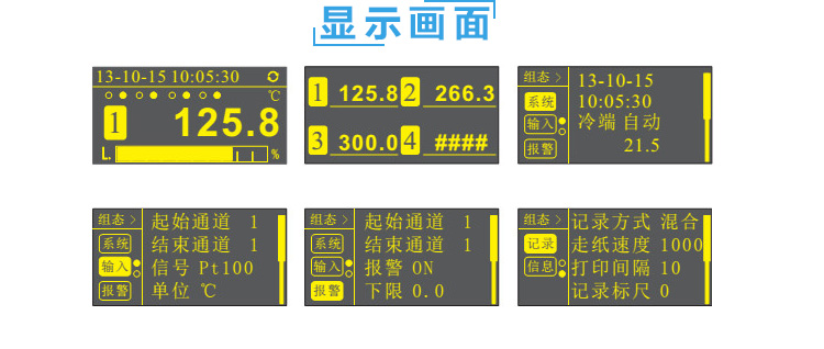 有紙記錄儀在測量,運算,顯示,打印等功能上有了很大的提高可以很方便的實現(xiàn)網(wǎng)絡(luò)的連接。有紙記錄儀采集的數(shù)據(jù),常用的有:溫度、壓力、流量、液位、電壓、電流、濕度、頻率、振動、轉(zhuǎn)速等。